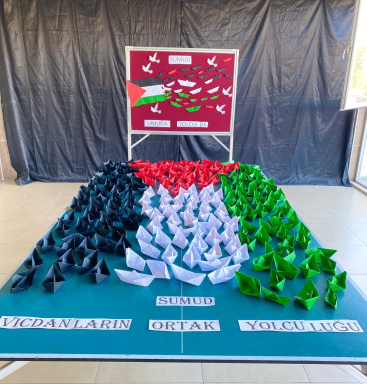 Yükü vicdan olan ve GAZZE'nin mağdur ve mazlum insanlarına yardım malzemesi taşıyan SUMUD FİLOSU'na öğrencilerimiz desteklerini yaptıkları çalışma ile gösterdiler. Bu güzel dayanışmaya öncü olan Betül KARABIYIK Hocamıza ve 12/A sınıfı öğrencilerini çok teşekkür ederiz.